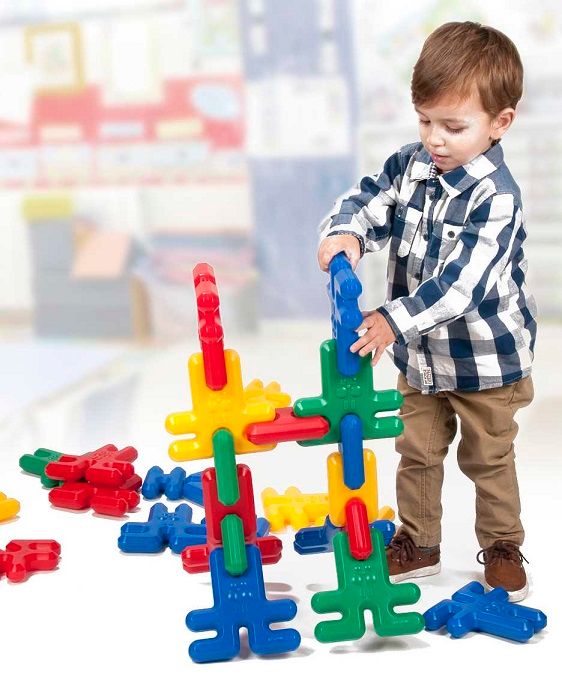 Joc de construcció amb peces gegants per a les mans més petites. Fabricat amb plàstic de gran resistència i durabilitat. Inclouen fitxes model de muntatge i guia didàctica per a professors