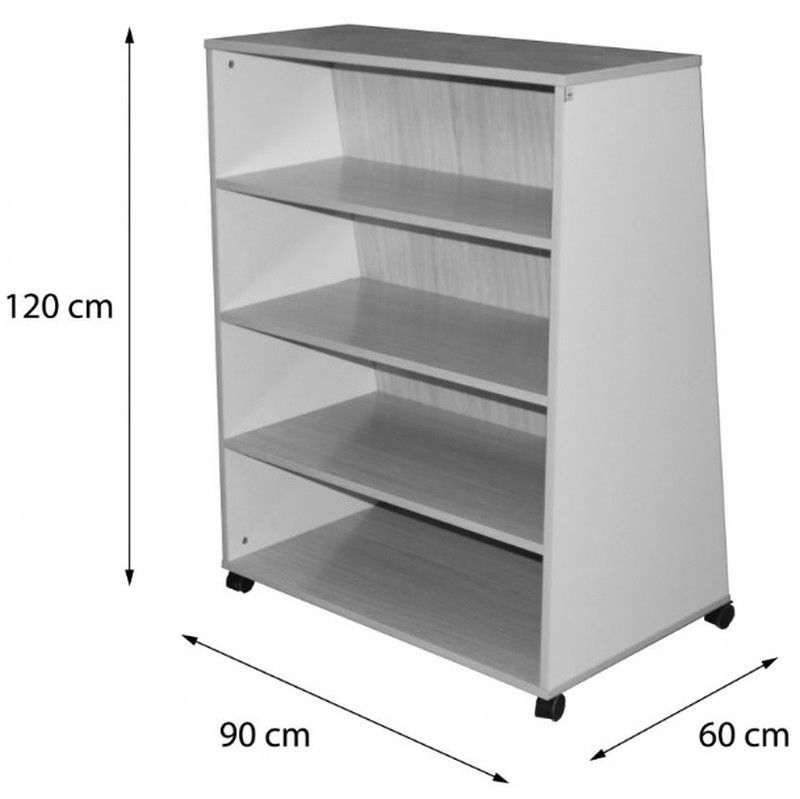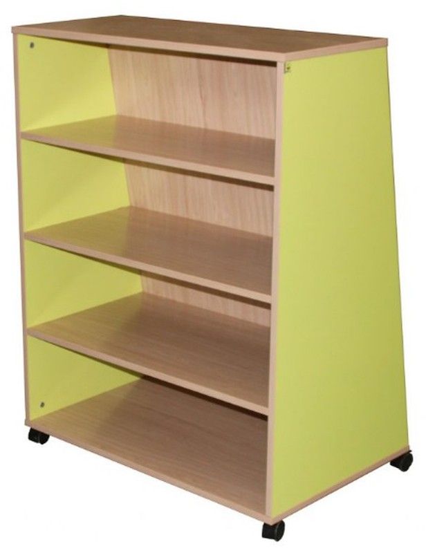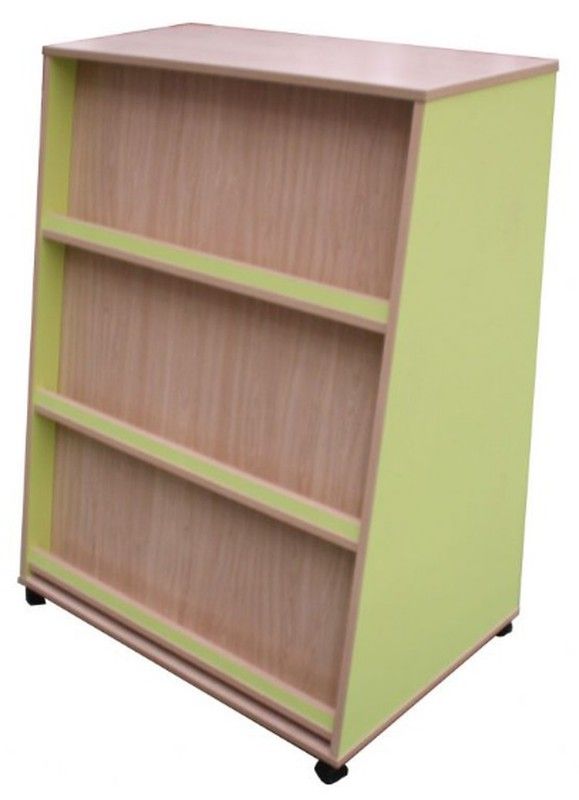 Expositor de llibres accessible per les dues cares, per una de les cares permet emmagatzemar i exposar llibres recolzats en un front de tauler situat al davant, cosa que n'impedeix la caiguda. Per l'altra cara disposa de zona prestatgeria on poder emmagatzemar tot tipus d'elements de lectura o qualsevol material, fabricat amb melamina de faig amb taulers de 19 mm i cantells de PVC de 2 mm acabats per les dues cares. Disposa de rodes de 6 cm amb fre, per facilitar-ne el desplaçament. Moble amb cantells arrodonits per prevenir talls o ferides. Assemblatge mitjançant sistema de maneguets amb acostament, que garanteix la màxima fermesa, amb unió sòlida i indeformable. Subjecció de lleixes, mitjançant conjunt d'unió, assegurant una estabilitat perfecta, a més d'una total resistència del suport. Garantit pels assaigs realitzats al centre tecnològic de certificació de mobiliari TECNALIA.