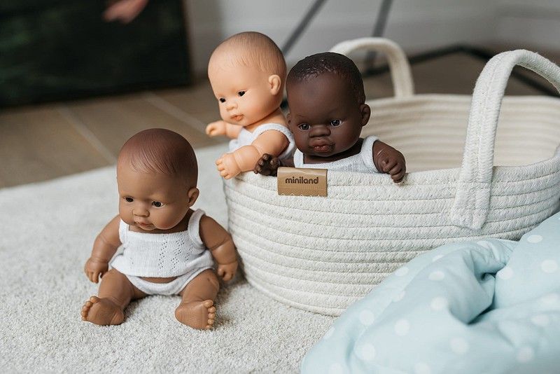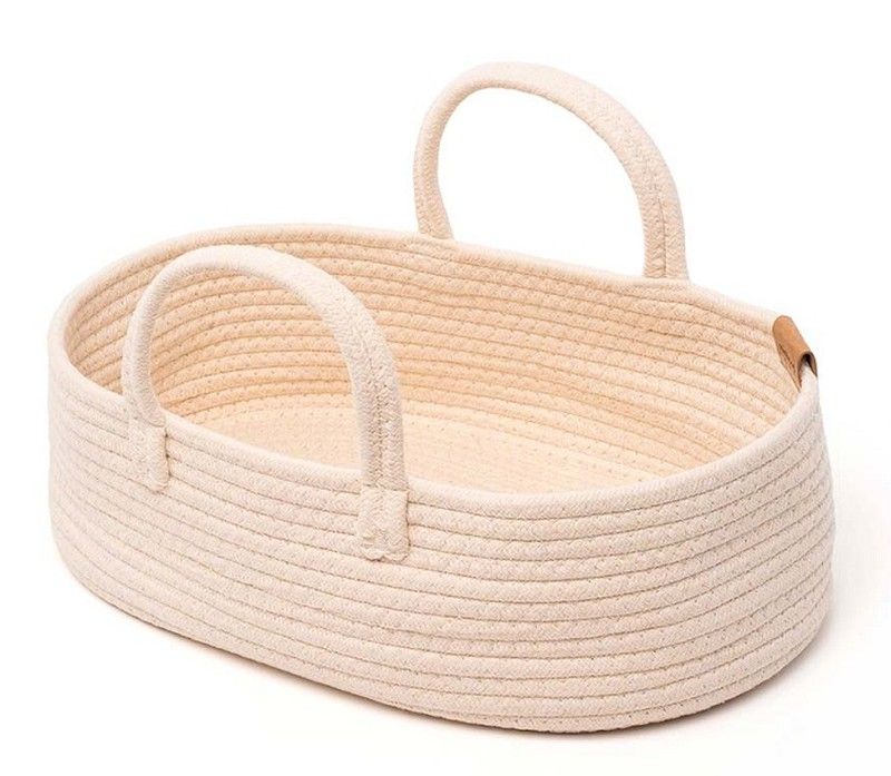 Capazo de algodón con asas, para transportar fácilmente los muñecos y muñecas Miniland dolls de hasta 40 cm. También puede funcionar como moisés o cunita.