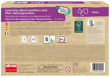 Cartes per desenvolupar el sentit matemàtic i comprendre els números fins a 10. Per treballar de manera intuïtiva: composició, descomposició, igualtat, equivalència, addició i sostracció. Estimulen l'emoció, la creativitat, el raonament i el càlcul, bases per al desenvolupament del pensament numèric i matemàtic. Desenvolupat per José Antonio Fernández Bravo. Expert en Neurodidàctica per a l'Educació Matemàtica. Escriptor, mestre, formador i professor universitari. Col·laborador al departament de Primera Infància i Educació Inclusiva de la UNESCO.