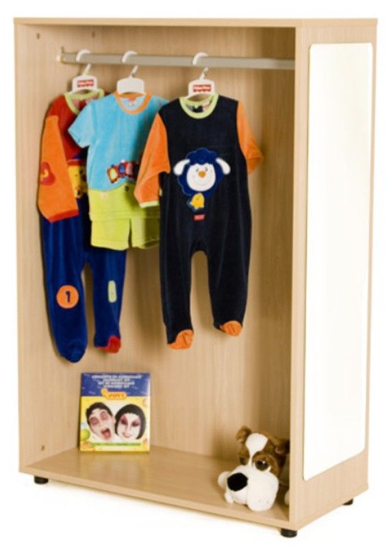 Moble de disfresses tancat a la part del darrere per ajustar-lo a la paret, fabricat en melamina de faig amb taulers de 19 mm de gruix. Cants de PVC de 2 mm acabats per les dues cares. Rodes de 6 cm amb fre, per evitar la humitat i poder-lo desplaçar fàcilment. Disponible també amb potes. El moble disposa d´un mirall de seguretat de 3 mm en un dels seus laterals, així com d´una barra central amb sistema anticaiguda per penjar les disfresses. Garantit pels assaigs realitzats al centre tecnològic de certificació de mobiliari TECNALIA.