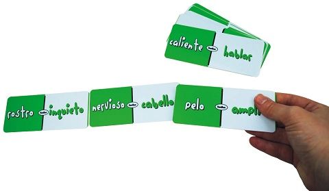 El dòmino de Sinònims en espanyol és un joc de lectura-escriptura per relacionar paraules escrites de diferent manera però que tenen el mateix significat. Per exemple: càlid i calent. Amb aquestes 28 fitxes de dòmino es podrà aprendre, de manera divertida, paraules diferents que signifiquen el mateix. Ideal per a escoles bressol o escoles d'idiomes que ensenyin espanyol. Aquest Dòmino de Sinònims en espanyol pertany a una sèrie de jocs de dominós seleccionats per practicar els coneixements adquirits a l'educació primària amb un vocabulari preparats per professionals de l'ensenyament.