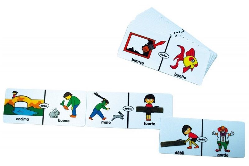 El dòmino d'Oposats és un joc de lectura-escriptura per relacionar cada adjectiu amb el seu oposat corresponent, tenint l'ajuda d'il·lustracions per a cada paraula. Amb aquestes 28 fitxes de dòmino es podrà aprendre, de manera divertida, paraules oposades entre si. Aquest Dòmino d'Oposats pertany a una sèrie de jocs de dominós seleccionats per practicar els coneixements adquirits a l'educació primària amb un vocabulari preparats per professionals de l'ensenyament.