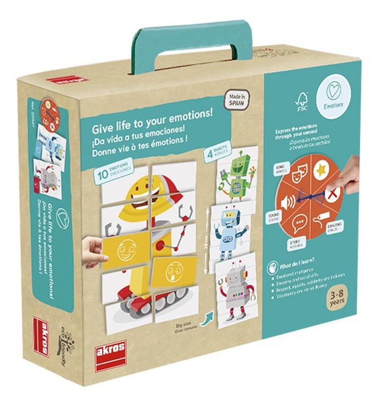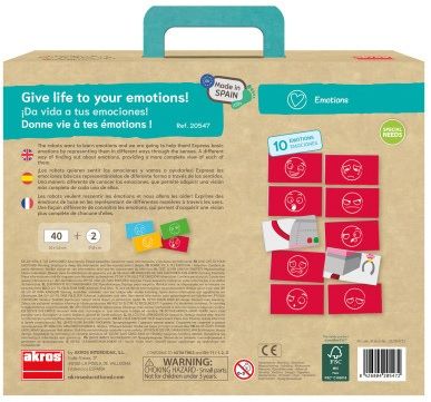 Els robots volen sentir les emocions i els ajudarem! Expressa les emocions bàsiques i les representa de diferent manera a través dels sentits. Una manera diferent de conèixer les emocions, que permet adquirir una visió més completa de cadascuna.