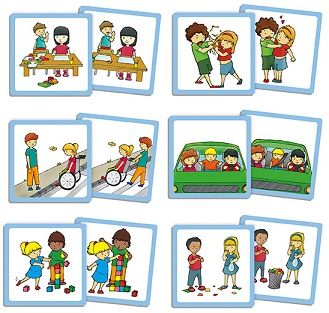 Sèrie de jocs d'associació de parelles, que mostren un bon i un mal comportament, en diferents situacions de l'entorn quotidià de l'infant.
