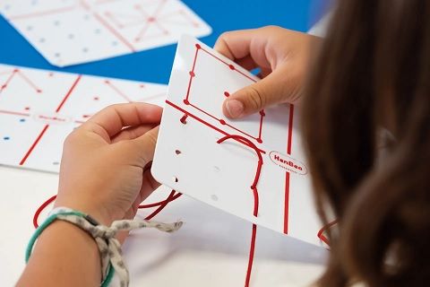 Figures abstractes, totes basades en nou punts concrets per augmentar la lògica, la destresa visual i la coordinació motriu fina augmentant segons alguns pedagogs la intel·ligència del nen.