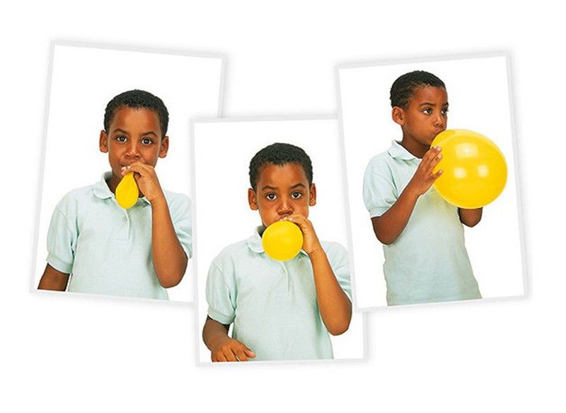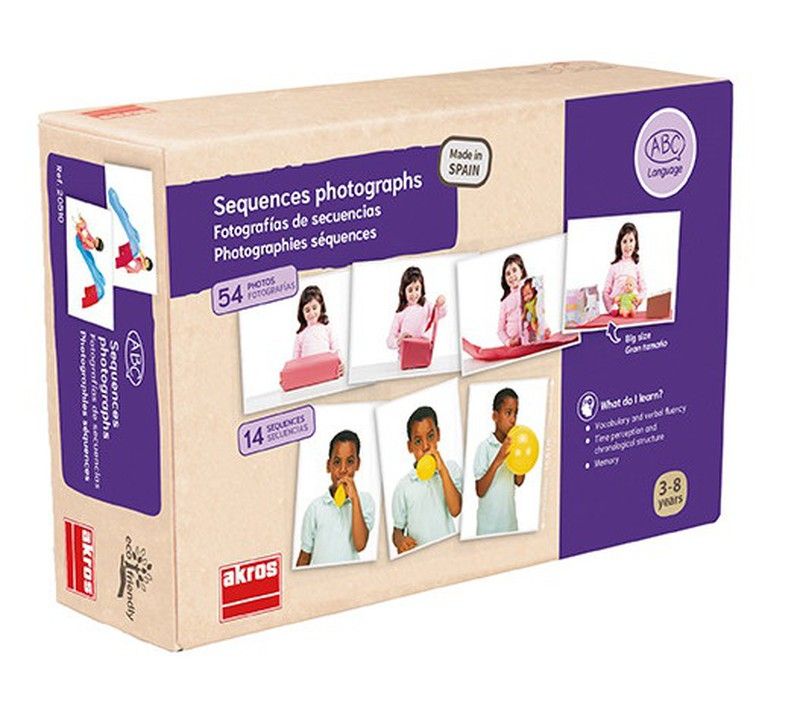 54 fotografies que representen 13 activitats seqüenciades (de 3, 4 o 5 escenes).