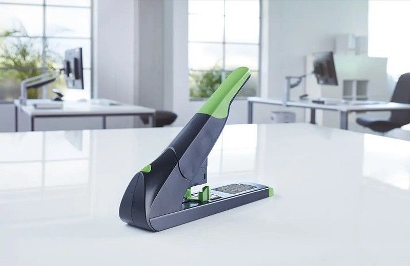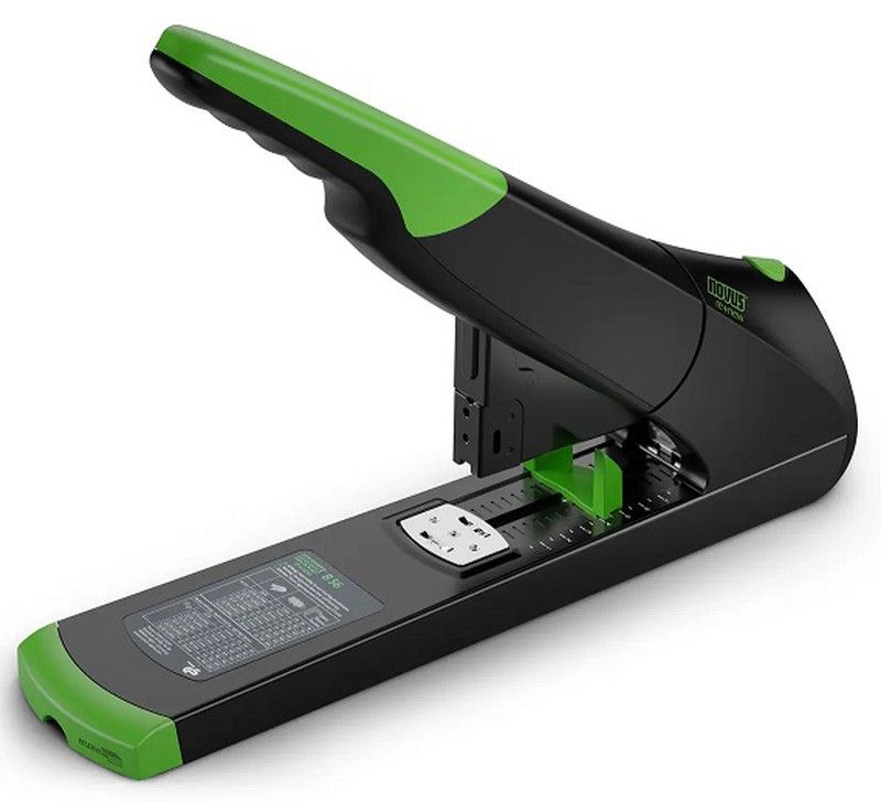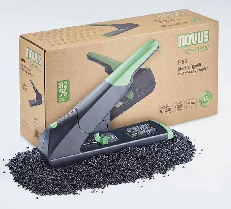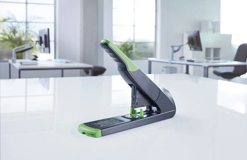 Grapadora de gruixos sostenible, amb una enorme capacitat de grapat de fins a 200 fulls - Sistema antibloqueig (ABS) per evitar embussos - Cos de metall amb revestiment de plàstic reciclat sostenible - La profunditat d'entrada del paper es pot variar (fins a 75 mm) - Solució de fallades exprés per a un grapat en buit en cas necessari - Carregador d'obertura frontal amb doble guia muntada sobre un ressort per evitar embussos de grapes - Patidora rotativa per facilitar un ràpid canvi entre el grapat en paral·lel i el bypass - Pes aprox. 1670 g
