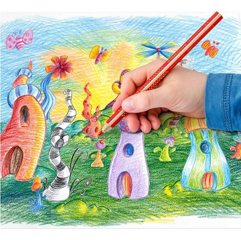 Llapis de color jumbo amb forma triangular ergonòmica per dibuixar de forma relaxada i fàcil Ideal per als primers exercicis d'escriptura i de dibuix A·B·S: el revestiment protector blanc reforça el nucli de la mina i augmenta la resistència als trencaments Atractiu disseny d'estrelles amb camp de nom Fusta procedent de boscos certificats pel FSC i gestionats de manera sostenible Recomanació d'afilallapis: Maquineta Noris de doble orifici 512 128 o maquineta metàl·lica de doble orifici 510 20 per a resultats d'esmolat ideals