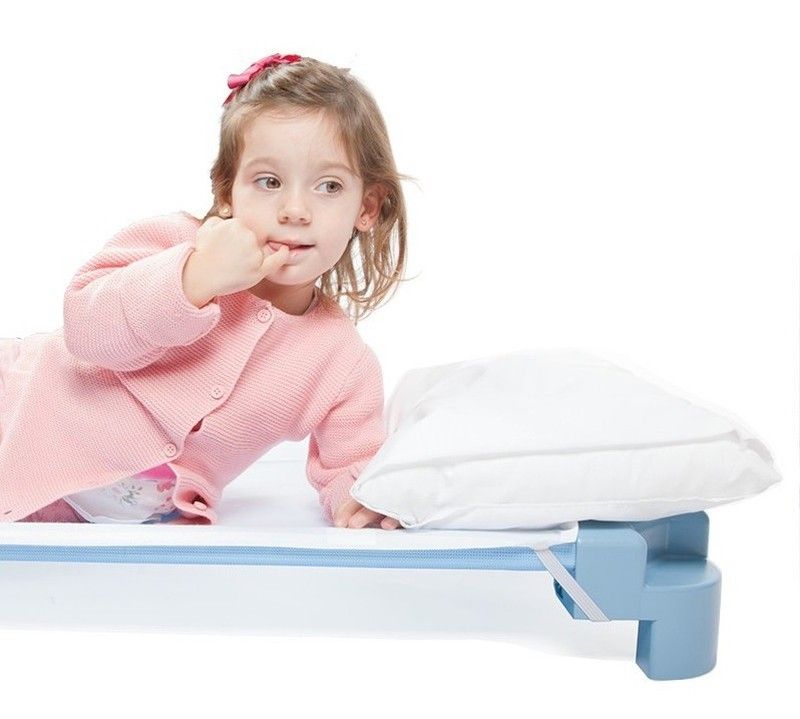 El llit més segur del mercat, fabricat a Espanya d'acord amb la Normativa Europea de Seguretat. La seva gran estabilitat evita accidents: no s'aboca. La tela és ignífuga M2 i no es destensa amb l'ús. La robustesa de les potes evita accidents en no deixar buits entre teixit i potes, i permet la seva fàcil higiene. (131x55x11cm).