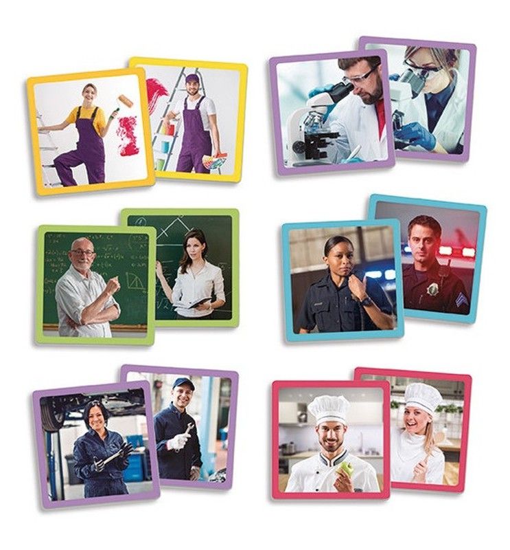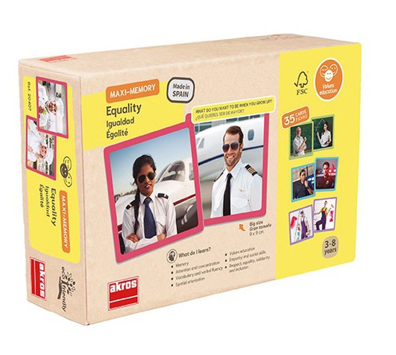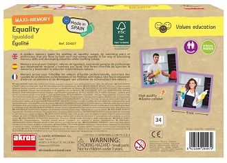 Memory actual per treballar valors digualtat, associant parelles de professions que exerceixen dones i homes per igual. Una manera divertida dexercitar la memòria i desenvolupar latenció transmetent valors. Amb imatges reals en fitxes de grans dimensions. Què vols ser de gran?