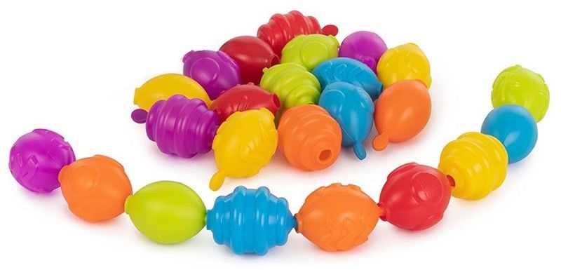 Grans comptes de textures i colors variats. Especialment pensades per a mans petites, proporcionen un gran valor de joc, fins i tot amb certes discapacitats. El seu assemblatge és per suau pressió romanent unides en forma de cadeneta.