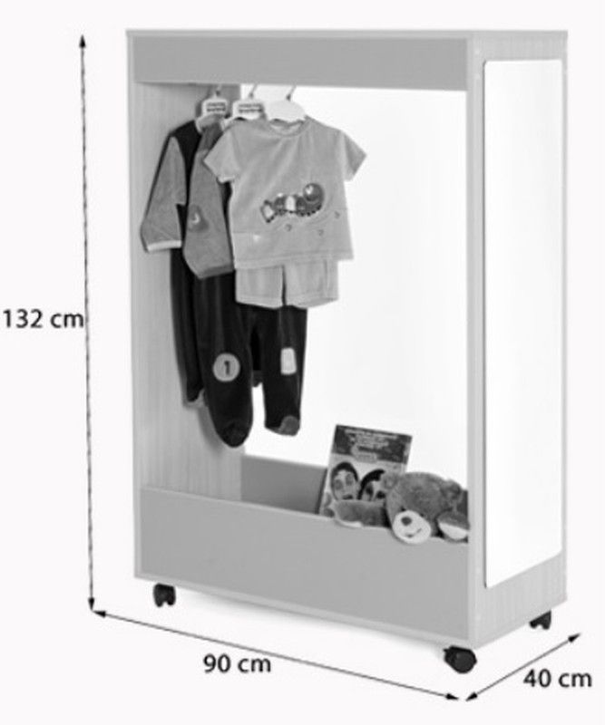 Moble de disfresses obert pels dos costats (frontal i posterior), fabricat en melamina de faig amb taulers de 19 mm de gruix i cantells de PVC de 2 mm, acabat per les dues cares. Rodes de 6 cm amb fre, per evitar la humitat i poder-lo desplaçar fàcilment. Disponible també amb potes. El moble disposa d´un mirall de seguretat de 3 mm en un dels seus laterals, així com d´una barra central amb sistema anticaiguda per penjar les disfresses. Garantit pels assaigs realitzats al centre tecnològic de certificació de mobiliari TECNALIA.