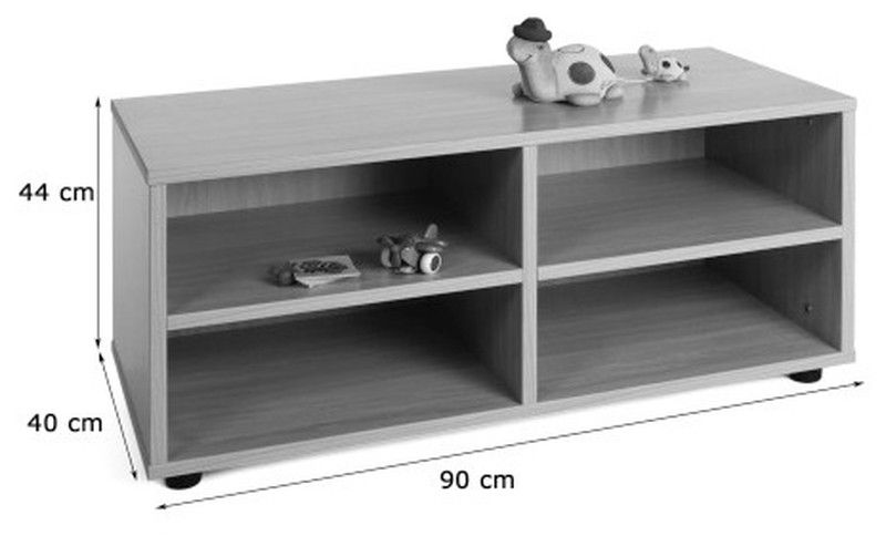 Moble caseller amb 4 caselles, fabricat en melamina de faig de 19 mm de gruix, excepte del darrere de 10 mm. Cants de PVC de 2 mm, acabat per les dues cares. Peus anivelladors de PVC de 4 cm de diàmetre i 4 cm d'alçada, per evitar la humitat i desnivells que pugui tenir el terra. Aquests peus poden ser retirats per poder superposar sobre diferents armaris, o bé substituir-los per rodes amb fre de 6 cm d'alçada. Garantit pels assaigs realitzats al centre tecnològic de certificació de mobiliari TECNALIA.