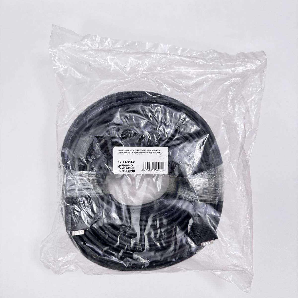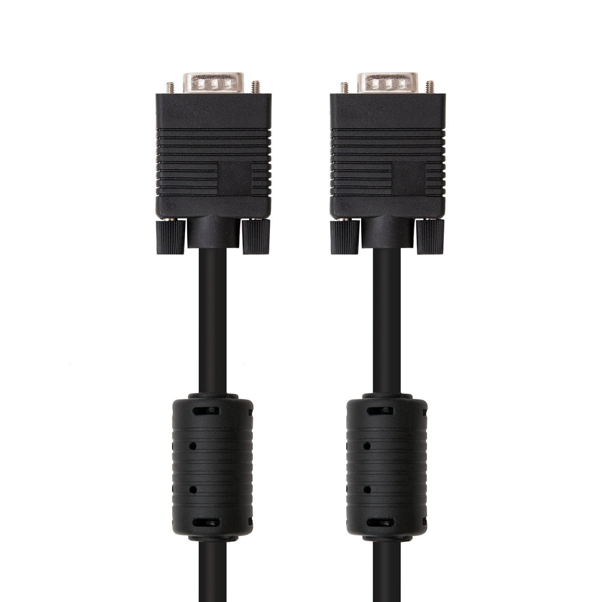 - Cable SVGA d'alta qualitat per a monitor, projector i PC-Connector tipus D-sub HDB15 mascle en ambdós extrems-3 fils coaxials (doble apantallat) per a senyals de color d'alta freqüència més 4 fils addicionals per a la sincronització. Doble apantallat per a tots els fils per evitar pèrdua de dades i interferències electromagnètiques (EMI). Inclou a més ferrita en ambdós extrems per evitar interferències d'alta freqüència.