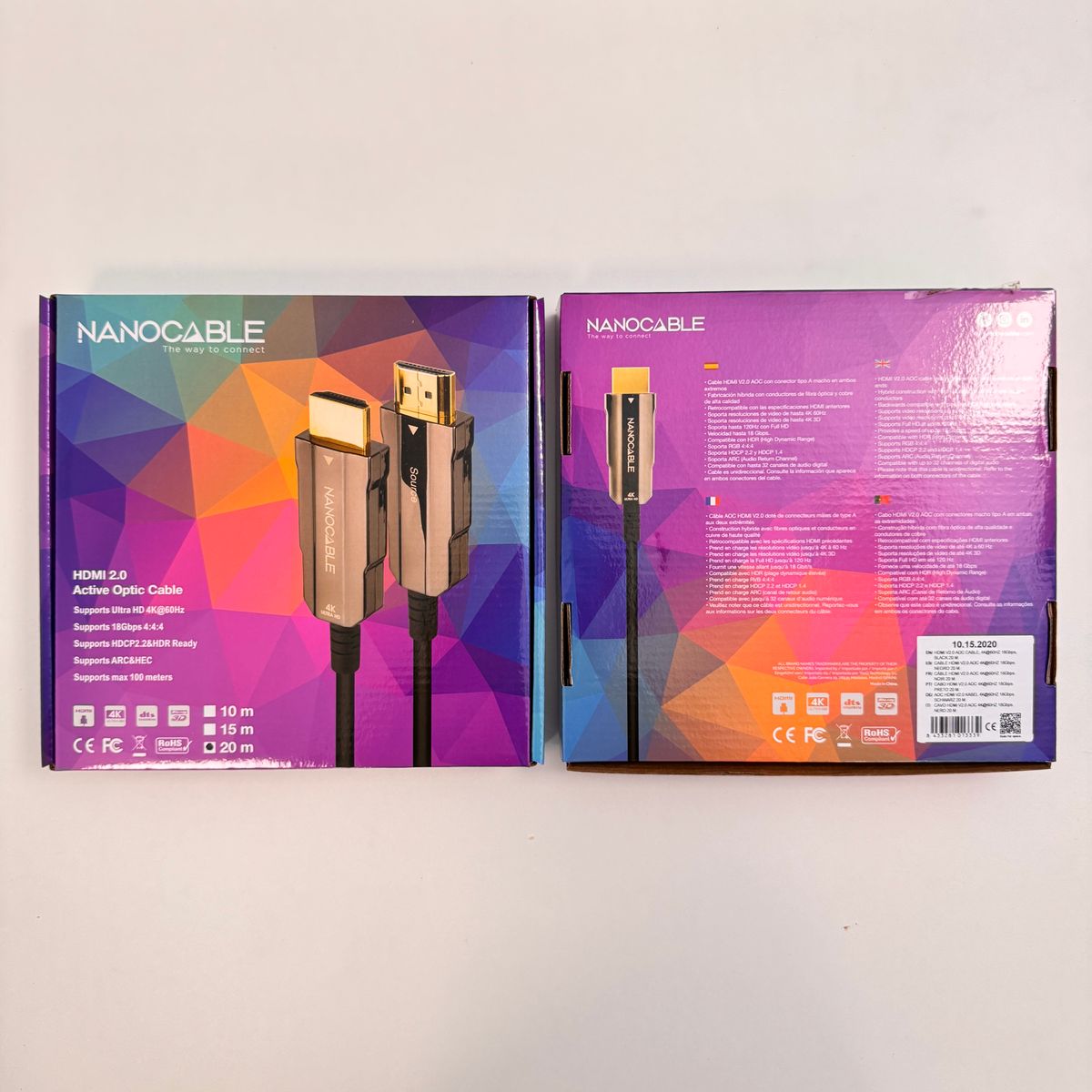 CABLE HDMI V2.0 AOC 4K@60HZ 18GBPSGràcies a una construcció premium, la millor qualitat de materials i, per descomptat, lús de fibra òptica, els nostres cables et permetran obtenir una alta velocitat de transmissió de dades. No perdràs gens ni mica de qualitat ni tan sols en les distàncies més llargues. Arriba a una amplada de banda de 18Gbps i una resolució de vídeo de 60 Hz en 4K. Els nostres cables es presenten en les nostres característiques bobines en les mesures de 30 a 100 metres.Cable unidireccional, ha de ser instal·lat. Mira la informació que apareix als dos connectors del cable per no tenir dubtes! Nanocable Cable HDMI V2.0 AOC 4K@60Hz 18Gbps A/M-A/M, Negre, 20 m, 20 m, HDMI tipus A (Estàndard), HDMI tipus A (Estàndard), 3D, 18 Gbit/s, Negre