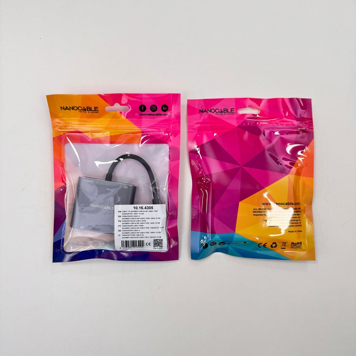 CONVERSOR USB-C A 2XHDMI/USB2.0/PD 10.16.4305El teu nou ordinador s'expandirà gràcies al nostre convertidor Nanocable. Amplia les entrades del dispositiu, a través d'un sol port USB-C tindràs dos ports HDMI, un port USB-A 2.0 i un altre USB-C de càrrega. Suma i segueix! Connecta el nostre convertidor al port USB-C del teu equip i podràs reproduir contingut, transmetre dades i carregar el teu dispositiu. Totes les sortides del nostre convertidor funcionen alhora! Amb un disseny compacte, minimalista i fabricat amb alumini. El nostre convertidor es convertirà en el teu nou aliat tecnològic. No necessites cap mena de programari addicional. Quan tinguis tot connectat funcionarà sense que hagis de fer res més. Nanocable Conversor USB-C a 2xHDMI/USB2.0/PD, 15 cm, Gris, 30 Hz, Gris, Round cable, 62 mm, 55 mm, 15 mm