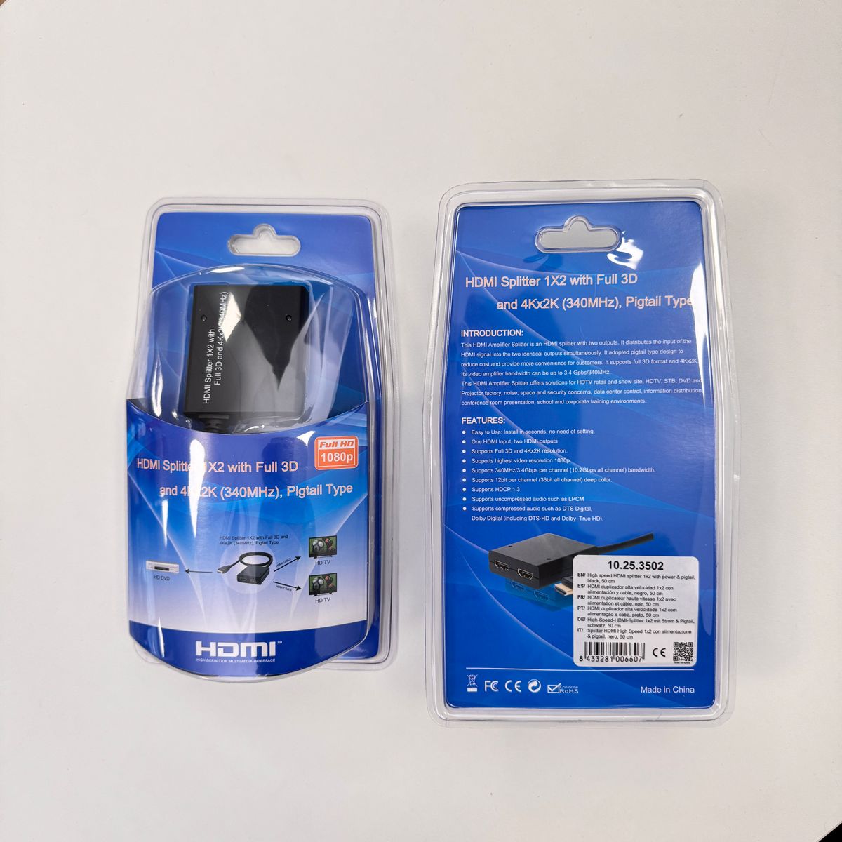 - HDMI duplicador (splitter) 1X2 (una entrada, dues sortides) amb pigtail (cable hdmi) 50 cm i font d'alimentació.- El duplicador HDMI d'Alta Velocitat permet duplicar el senyal d'entrada per a dues pantalles. frame.- Suporta DOLBY True-HD i DTS-HD- 8 canals de descompressió d'àudio digital en taxa de 192KHz amb 24bits. I PIGTAIL 50 CM, HDMI, 2x HDMI, HDMI, 2560 x 1600 Pixels, Negre, 48 bit