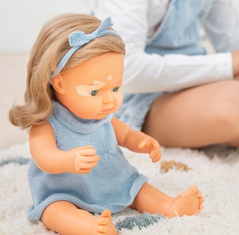 Nina d'origen caucàsic, cabell ros fosc i vitiligen, pertanyent a la col·lecció inclusiva de ninots i nines Miniland Dolls, ideada per representar la diversitat i fomentar el respecte i la tolerància entre els nens petits sigui quina sigui la seva condició. Fabricada a Espanya, a partir de vinil suau, fa 38 cm d'alçada i ve sense robeta. És anatòmicament realista perquè els nens puguin distingir les diferències físiques dels diferents orígens, gèneres, etc.