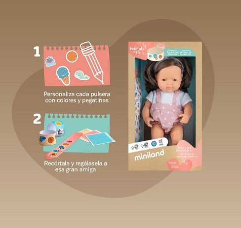 La Nina 38cm My Friends & Em forma part de la nova col·lecció de nines i ninots de Miniland. Aquesta col·lecció està dissenyada per promoure el valor de l'amistat i la màgia de compartir des d'una edat primerenca, tot fomentant el desenvolupament emocional i social dels nens. Cada nina inclou una proposta art&craft que convida a la creativitat: polseres de l'amistat retallables i personalitzables amb stickers, així com targetes de l'amistat per regalar als millors amics/gues. Aquestes activitats ajuden els nens a desenvolupar habilitats motores ia expressar els seus sentiments. La col·lecció My Friends & Me es destaca pel seu enfocament en la diversitat i la tolerància, ensenyant els nens a valorar i respectar les diferències culturals des de petits. Aquesta nina africana n'és un exemple perfecte d'inclusió i d'educació a través del joc. Fabricada artesanalment a Espanya per Miniland, la nina està feta de vinil suau d'alta qualitat i perfumada amb una lleugera aroma de vainilla, oferint una experiència sensorial única. Tant el canell com els accessoris compleixen les normatives de seguretat de la joguina, assegurant que siguin aptes per al joc lliure de nens a partir de 10 mesos. Altres models de la col·lecció, com els que inclouen ulleres o implants coclears, són adequats per a nens a partir de 3 anys. Deixa'ls descobrir el fantàstic món de l'amistat amb el canell 38cm My Friends & Me de Miniland, i permet que els nens explorin el món de la tolerància i la inclusió mentre es diverteixen. Descobreix altres maneres d'aprendre sobre diversitat a la plataforma de recursos digitals gratuïts Miniland Teach&Play.