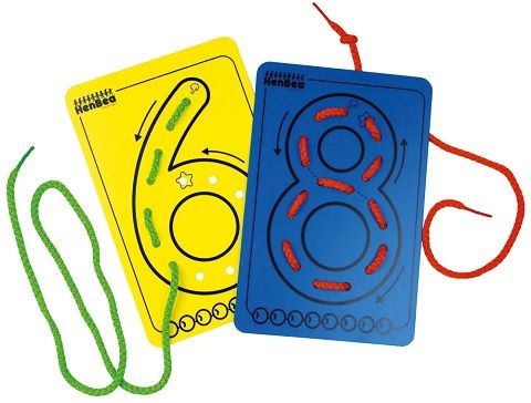 Els Números per a Hilar són ideals per ensenyar el traç dels números. Aquestes targetes, realitzades en plàstic rígid, són una forma entretinguda de familiaritzar els nens amb les formes dels números a través de la manipulació dels cordons. Es poden utilitzar de dues maneres: o filant amb els cordons o usant-les com a plantilles per dibuixar els punts al paper. Cada targeta també té dibuixats uns comptes per representar la quantitat del número escrit en ells. D'aquesta manera es relaciona el nombre i la quantitat. HenBea ofereix per triar diversos tipus números i, ara també, en plàstic translúcid, ideal per a taules o calaixos de llum.