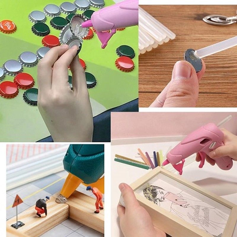 . El complement més eficaç i professional per realitzar els teus petits treballs de bricolatge a casa i manualitats. La seva composició permet obtenir una gran precisió i neteja en els treballs realitzats, de manera fàcil i segura. Barres d'adhesiu hot melt que no degota. Aplicació d'adhesió instantània a multitud de superfícies: fusta, plàstic, ceràmica, metall, pell, tèxtil, goma EVA, feltre, cartró i molts altres productes. Les barres de cua a color són perfectes per quan necessites dissimular el color de l'adhesiu amb el color del material a enganxar.