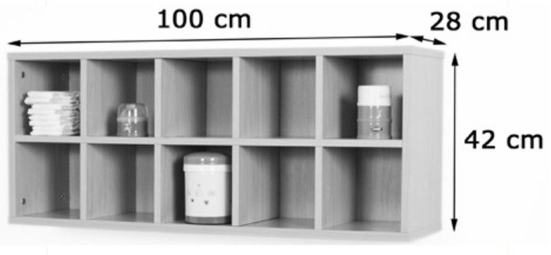 Moble caseller amb 10 caselles, fabricat en melamina de faig de 19 mm de gruix, del darrere de 10 mm, separadors de caselles de 19 mm i cantells de PVC de 2 mm, acabat per les dues cares. Garantit pels assaigs realitzats al centre tecnològic de certificació de mobiliari TECNALIA.