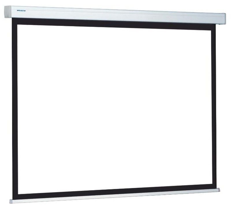 Pantalla de projecció elèctrica professional per a paret o sostre amb excel · lent relació qualitat / preu . Sistema Easy Install per a una fàcil instal·lació. Disposa dun sistema de connexió al corrent i accessoris molt ràpid i senzill. Inclou un interruptor manual de pujada i baixada. Tela blanca mat amb revers de color negre. Disponible versions amb vores negres, sense vores negres. Disponible en formats 1:1, 4:3, 16:9 i 16.10.