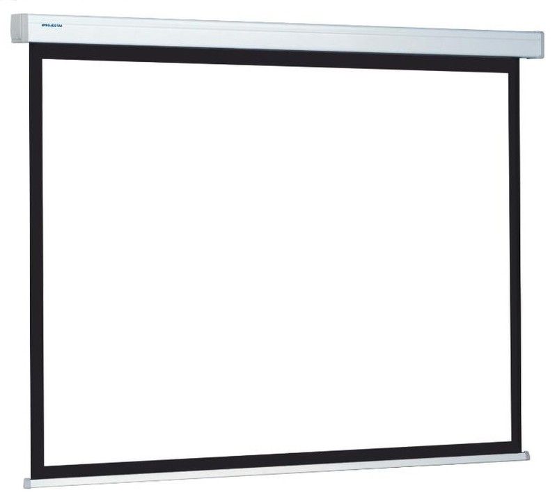Pantalla de projecció elèctrica professional per a paret o sostre amb excel · lent relació qualitat / preu . Sistema Easy Install per a una fàcil instal·lació. Disposa dun sistema de connexió al corrent i accessoris molt ràpid i senzill. Inclou un interruptor manual de pujada i baixada. Tela blanca mat amb revers de color negre. Disponible versions amb vores negres, sense vores negres. Disponible en formats 1:1, 4:3, 16:9 i 16.10.