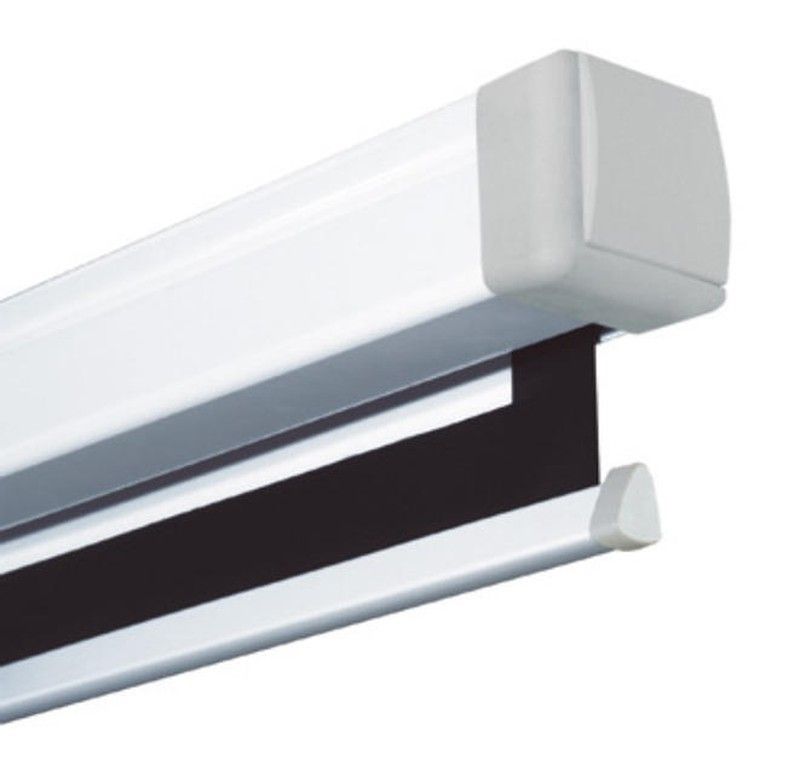 Pantalla de projecció elèctrica professional per a paret o sostre amb excel · lent relació qualitat / preu . Sistema Easy Install per a una fàcil instal·lació. Disposa dun sistema de connexió al corrent i accessoris molt ràpid i senzill. Inclou un interruptor manual de pujada i baixada. Tela blanca mat amb revers de color negre. Disponible versions amb vores negres, sense vores negres. Disponible en formats 1:1, 4:3, 16:9 i 16.10.