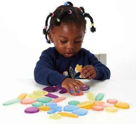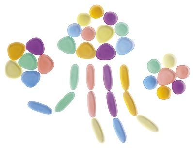 Les Pedres Arc Iris de la marca EDX és un joc innovador de creativitat en què els nens poden construir formes molt variades a més de practicar les primeres matemàtiques manipulatives i també serigrafies. Tot això es pot fer ja que aquestes pedres tenen 6 mides diferents amb 6 colors (vermell, blau, groc, taronja, verd i morat). El material en què estan realitzades aquestes pedres és un plàstic resistent, molt suau i rodonet. Les diferents mides que tenen són ideals perquè les mans dels nens els agafin i puguin fer també l'exercici de la pinça, enfortint els músculs de les mans i desenvolupant habilitats motores fines.