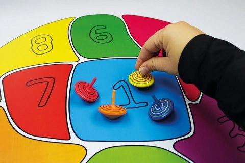 Un joc actiu i emocionant que combina la coordinació del gir de la perinola amb el càlcul mental! Col·loca el Maxi tauler a terra asseu-te al voltant amb els altres jugadors ia veure on cau la perinola per sumar-ho al teu compte.