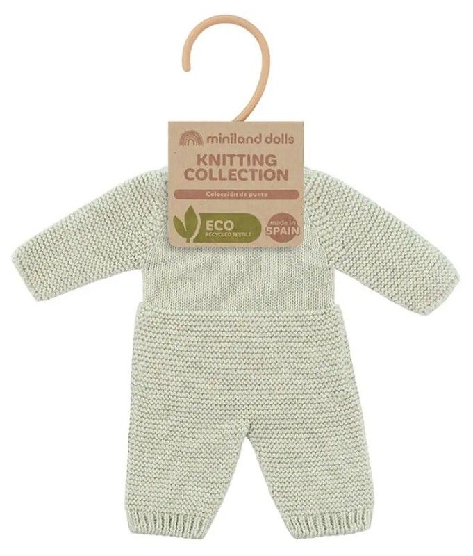 Pijama de punt per a ninots i nines de 21cm. Té un bonic color lli suau. La nova col·lecció de robeta de punt per a ninots Miniland Dolls, està fabricada amb materials reciclats. Tots ells en tonalitats naturals i amb un aire “handmade”.