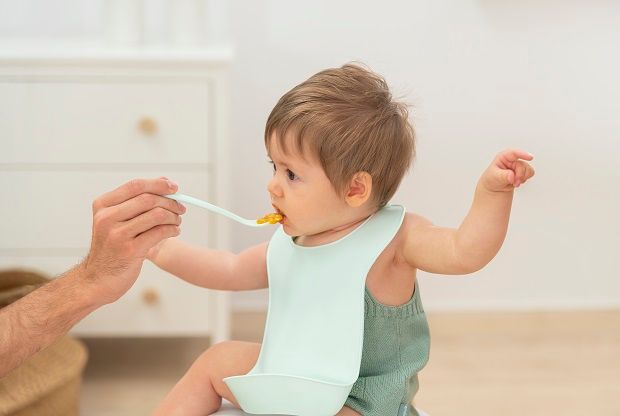 Realitzat de plàstic translúcido. El seu disseny permet que les restes de menjar es dipositin en el pitet sense arribar a tacar al nen. El coll és ajustable i permet obrir i tancar amb facilitat. No s'ha de rentar en rentavaixella.