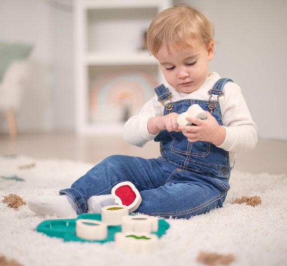Puzle encaixable d'estimulació sensorial tàctil i visual per a nadons a partir de 12 mesos. Amb ell, els més petits gaudiran jugant mentre desenvolupen la psicomotricitat fina i aprenen a concentrar-se, habilitat que els serà de gran ajuda en etapes futures, a través dels seus jocs d'encaixables. La curiositat dels nadons es dispararà, gràcies als colors contrastats ia les 6 peces de diferents textures en forma de fulles, fruites i flors. Un joc en què aprendran a associar cada "forma" amb el seu "buit". A més, cada peça sensorial d'aquesta divertida joguina de la col·lecció Feel to learn està fabricada amb materials reciclats i reciclables, cosa que redueix al mínim el seu impacte mediambiental. Pels petitets més curiosos!