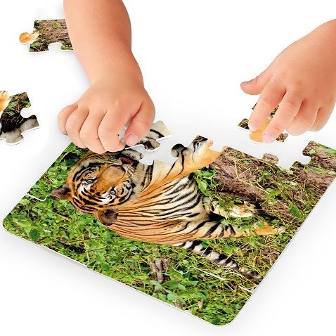 Una col·lecció de 3 models de puzles progressius, amb diferents nombres de peces cadascun amb l'objectiu d'augmentar la dificultat i motivar la destresa i l'atenció. Cada puzle està il·lustrat amb un model diferent danimal en perill dextinció. La cara del darrere de les peces es contrasta en colors vius que ajudaran a la seva identificació.