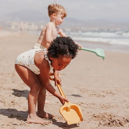 Amb mànec llarg i estructura reforçada. Fabricat completament de polipropilè reciclat, un material eco-friendly, respectuós amb el medi ambient. Resistent i durador, ideal per a ús col·lectiu i diversió a la platja oa la neu.