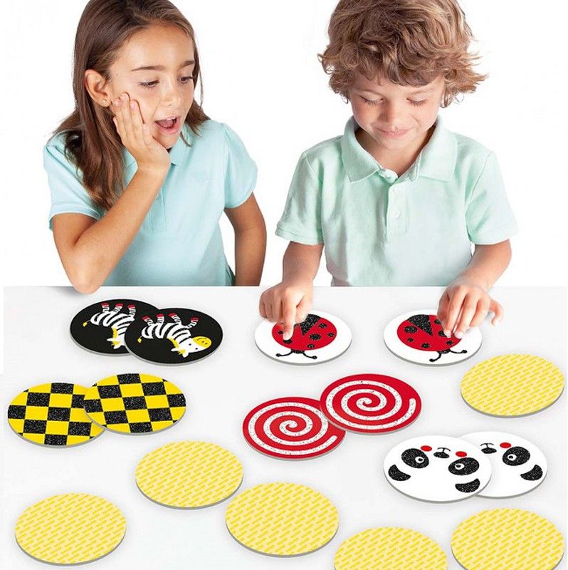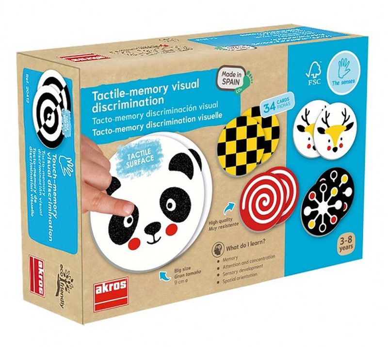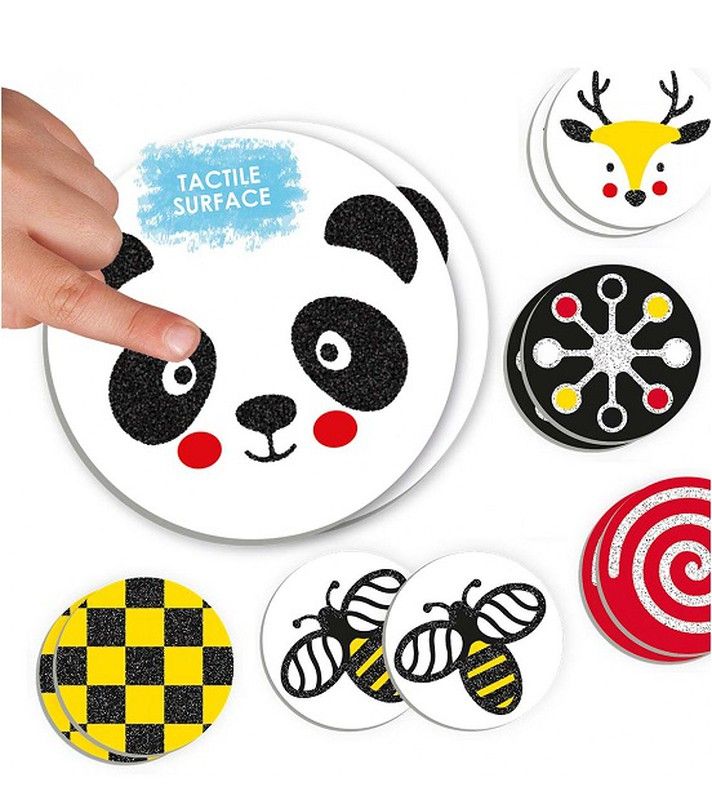 Original memory tàctil amb il·lustracions especialment creades amb molt de contrast i textura rugosa! Desenvolupa la discriminació visual i tàctil, latenció i la memòria espacial. També adequat per a persones amb discapacitat visual.