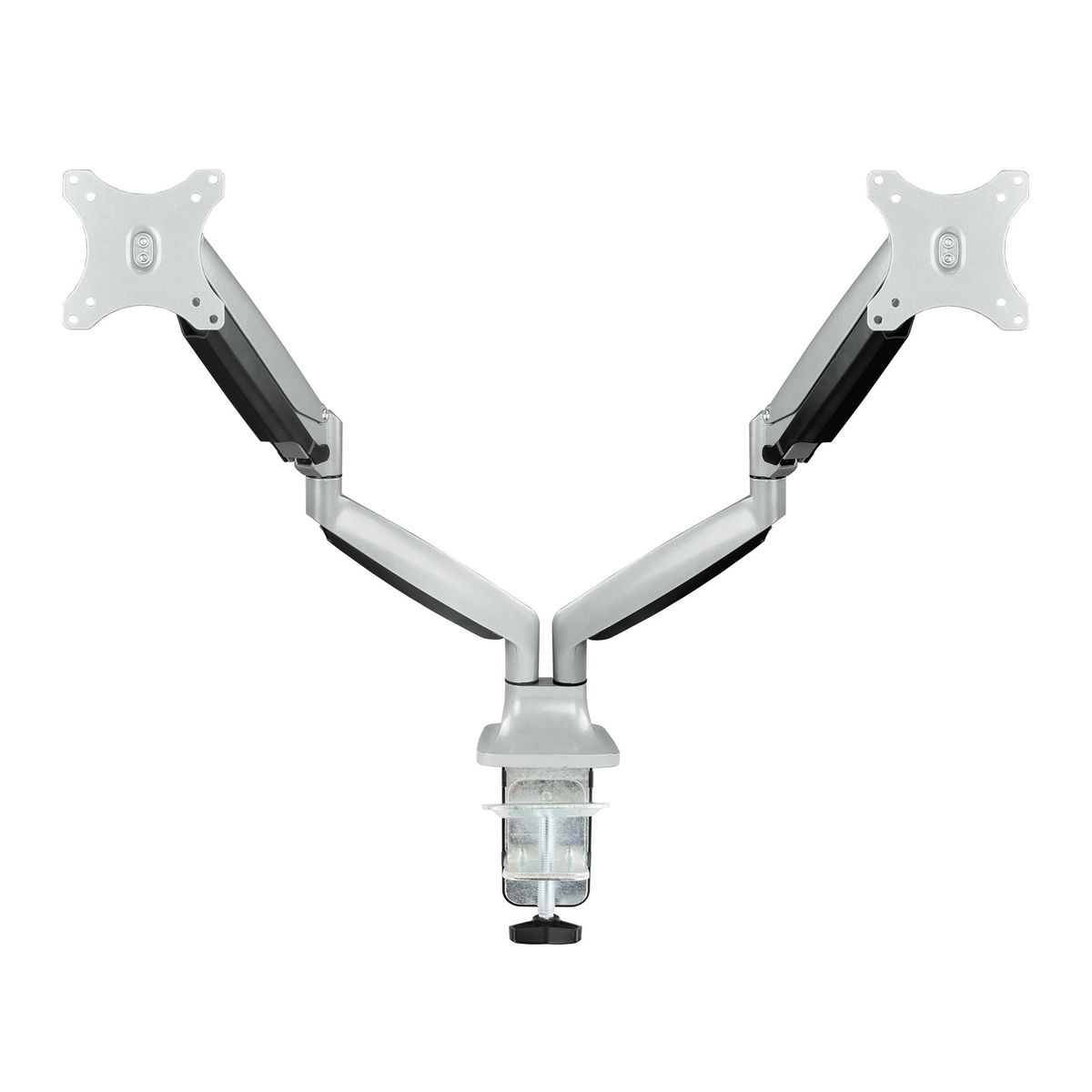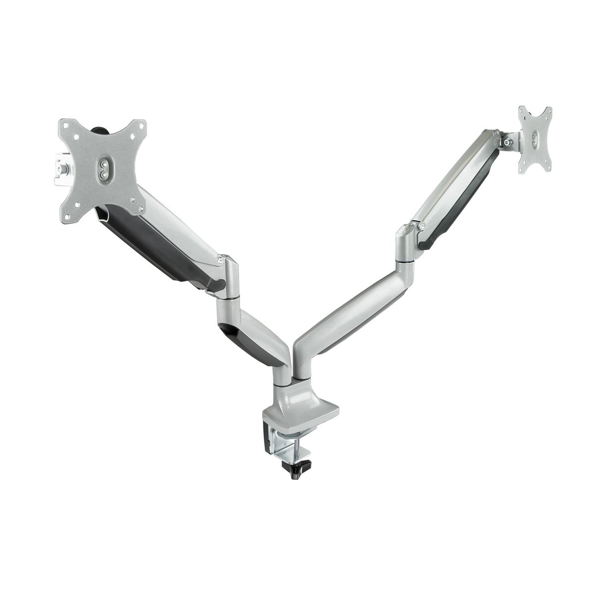 TooQ Suport de Taula Giratori i Inclinable per a 2 Pantalles (Monitor / TV Plasma / LCD / LED) 13” – 32”, de Dos Braços, Plata