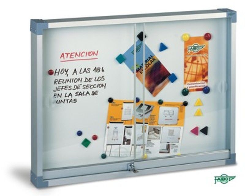Garantia de la superfície 10 anys. De sòlida estructura en alumini anoditzat i cantoneres decoratives. Portes corredisses mitjançant mecanisme lliscant de rodaments. Subministrades amb els elements de fixació. Pany amb clau. Superfície metàl·lica blanca, útil per al treball amb imants i figures magnètiques. Permet l'escriptura amb retoladors especials per a pissarra blanca. Caixa individual.